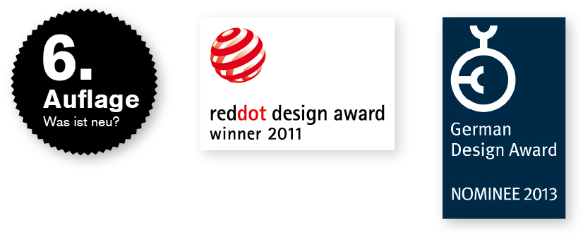 Wir freuen uns über die erhaltene Auszeichnung durch eine internationale Jury mit dem «red dot 2011» und der Nominierung durch den German Design Award für hohe Designqualität.